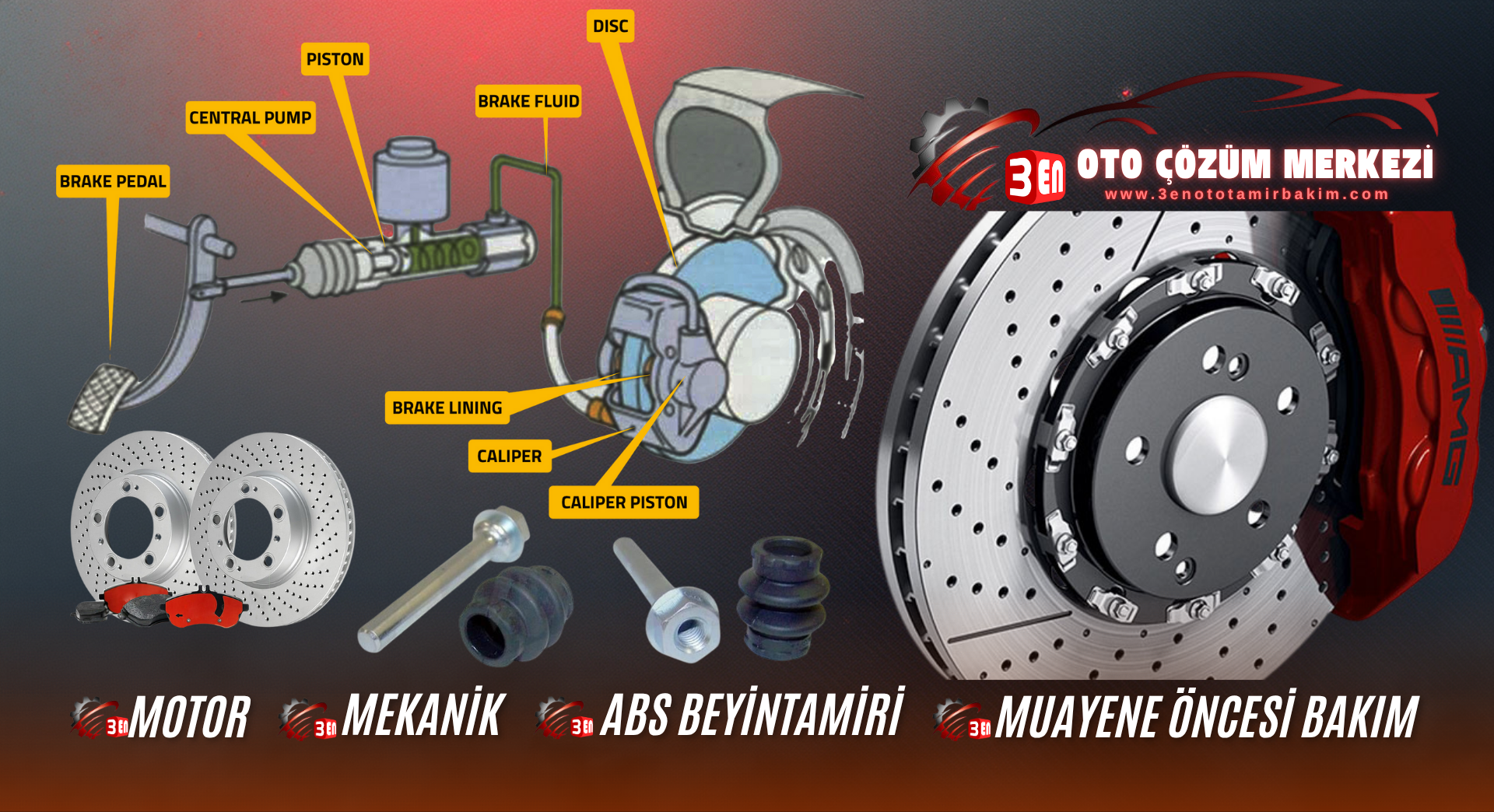 1. Araç ve Fren Sistemi Kontrolü: Disk, balata, pimler ve körükler detaylı incelenir